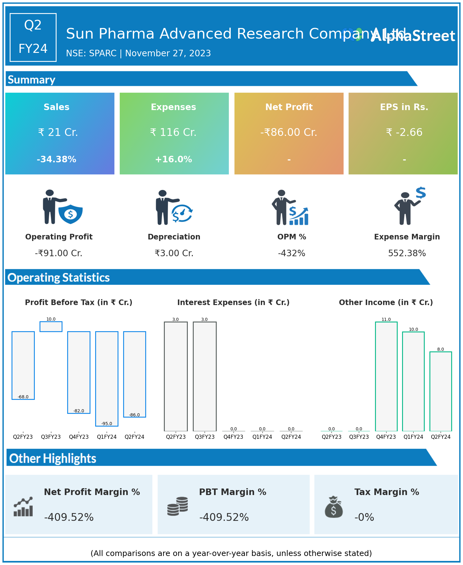 Total Expenses for Q2FY24 of ₹116.00 Crores up from ₹100.00 Crores year on year, a rise of 16.0%.