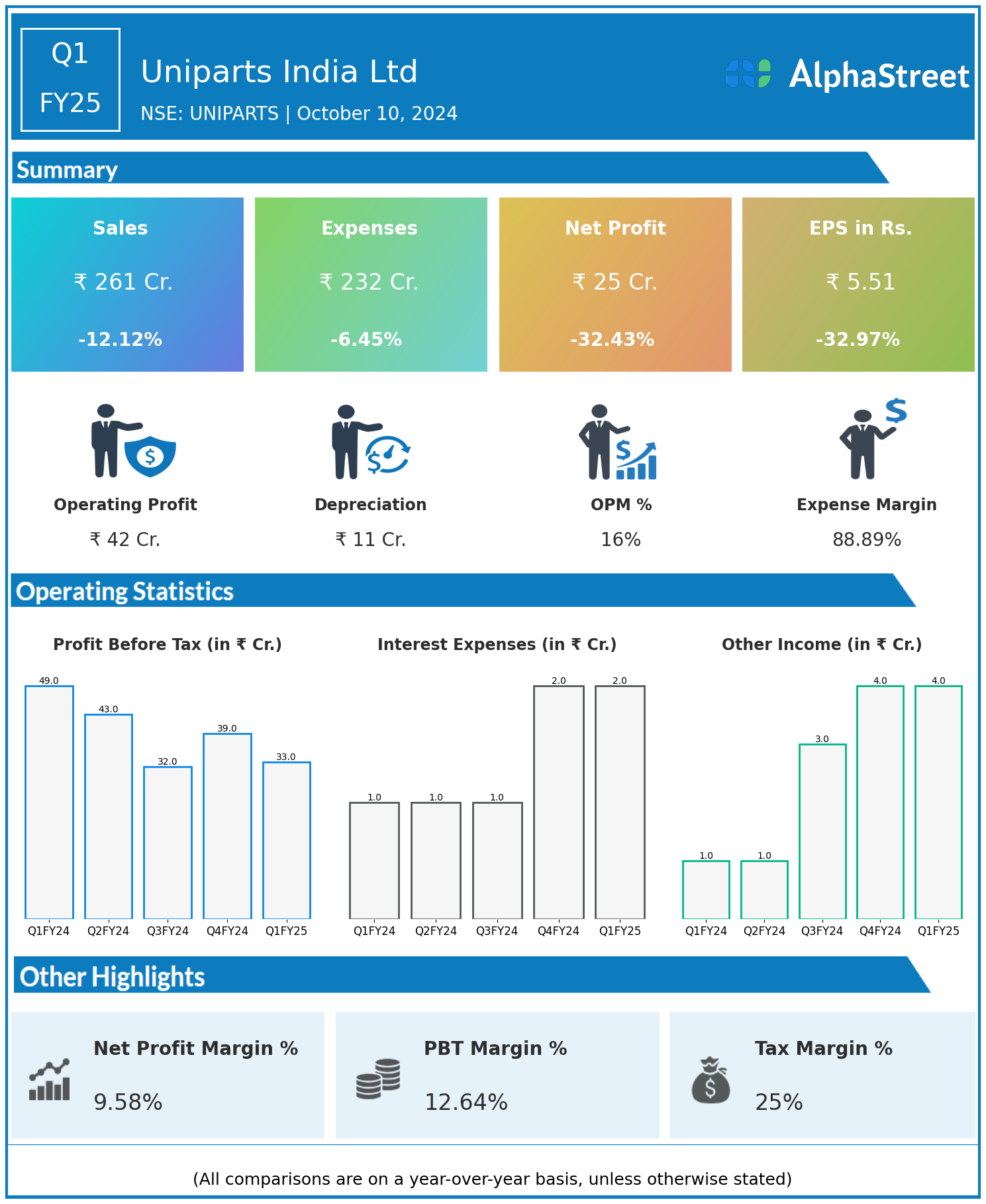 off highway market Uniparts India Ltd Q1FY25; 32% fall in Profits 1 year ago Incorporated in 1994, Uniparts India Limited is a manufacturer of engineered systems and solutions. The company is one of the… Uniparts India Ltd Q4FY24; 36% fall in Profits 2 years ago Incorporated in 1994, Uniparts India Limited is a manufacturer of engineered systems and solutions. The company is one of the…