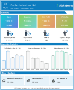 Executive Summary Finolex Industries Ltd reported Q3FY26 revenues of ₹898 crore, down 10.29% YoY, but consolidated net profit rose 54.93%...