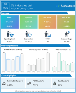 Executive Summary JTL Industries Ltd reported Q3FY26 revenues of ₹423 crore, down 6.42% YoY, yet consolidated net profit rose 4.0%...