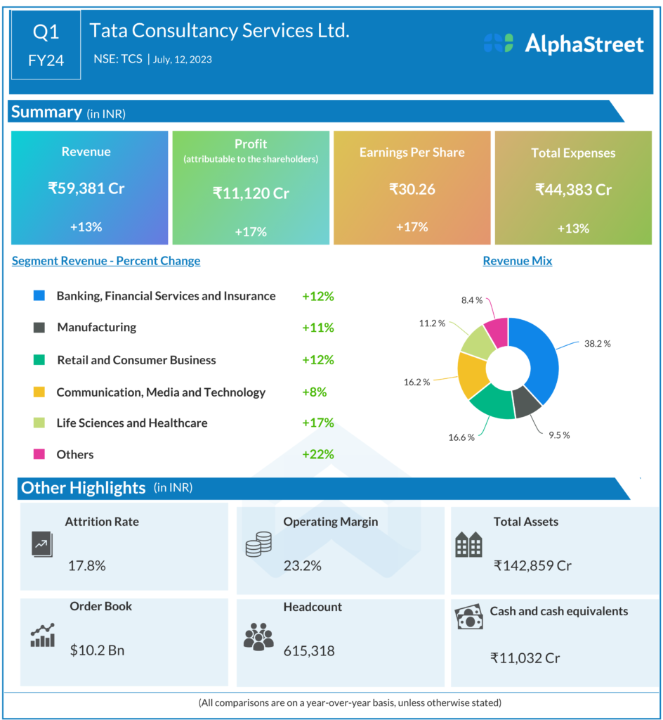 Commenting on the result, Mr K Krithivasan, Chief Executive Officer and Managing Director of TCS said: “ It is very satisfying to start the new fiscal year with a string of marquee deal wins. We remain confident in the longer-term demand for our services, driven by the emergence of newer technologies. We are investing early in building capabilities at scale on these new technologies, and in research and innovation, so we can maximize our participation in these opportunities”.