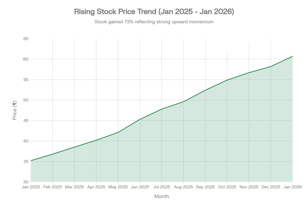 Ujjivan SFB’s stock surged 77.9% over the past year, outperforming sector indices as investors rewarded the bank’s transformation toward secured lending and its path to universal banking status. The lender targets a gross loan book of ₹1 lakh crore by FY30, with secured loans reaching 65-70% of assets and RoE improving to 16-18%.
