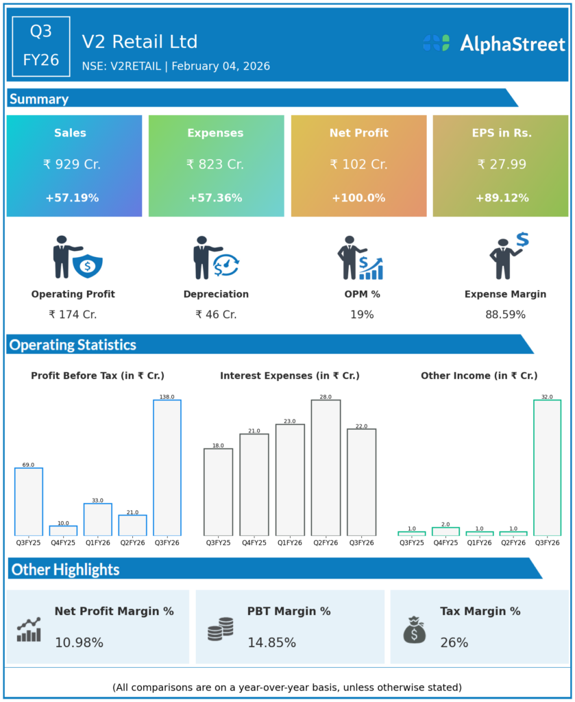 - Revenue from Operations: ₹929 cr, +57% YoY vs ₹592 cr in Q3 FY25, strong growth driven by aggressive store expansion and higher retail throughput.