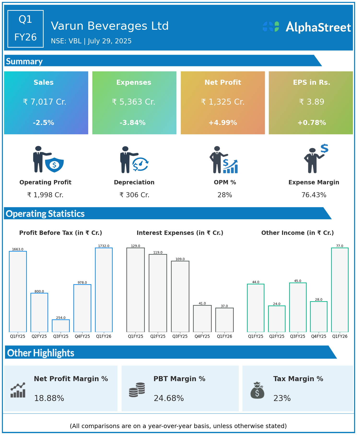 Net Profit (PAT): ₹1,325.49 crore, up 5% YoY from ₹1,261.83 crore in Q1 FY25.